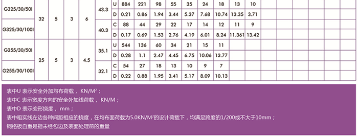 工字型扁鋼中心距為30常用格柵板規格型號及安全荷載表